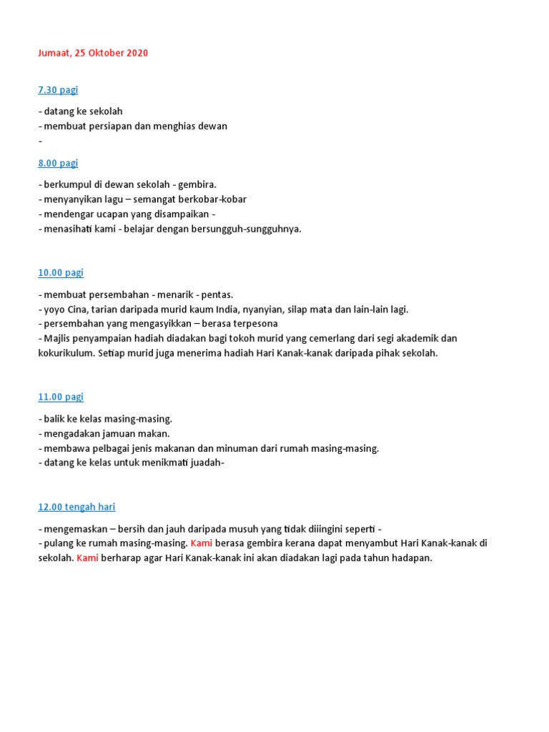 Laporan Sambutan Hari Kanak Pdf